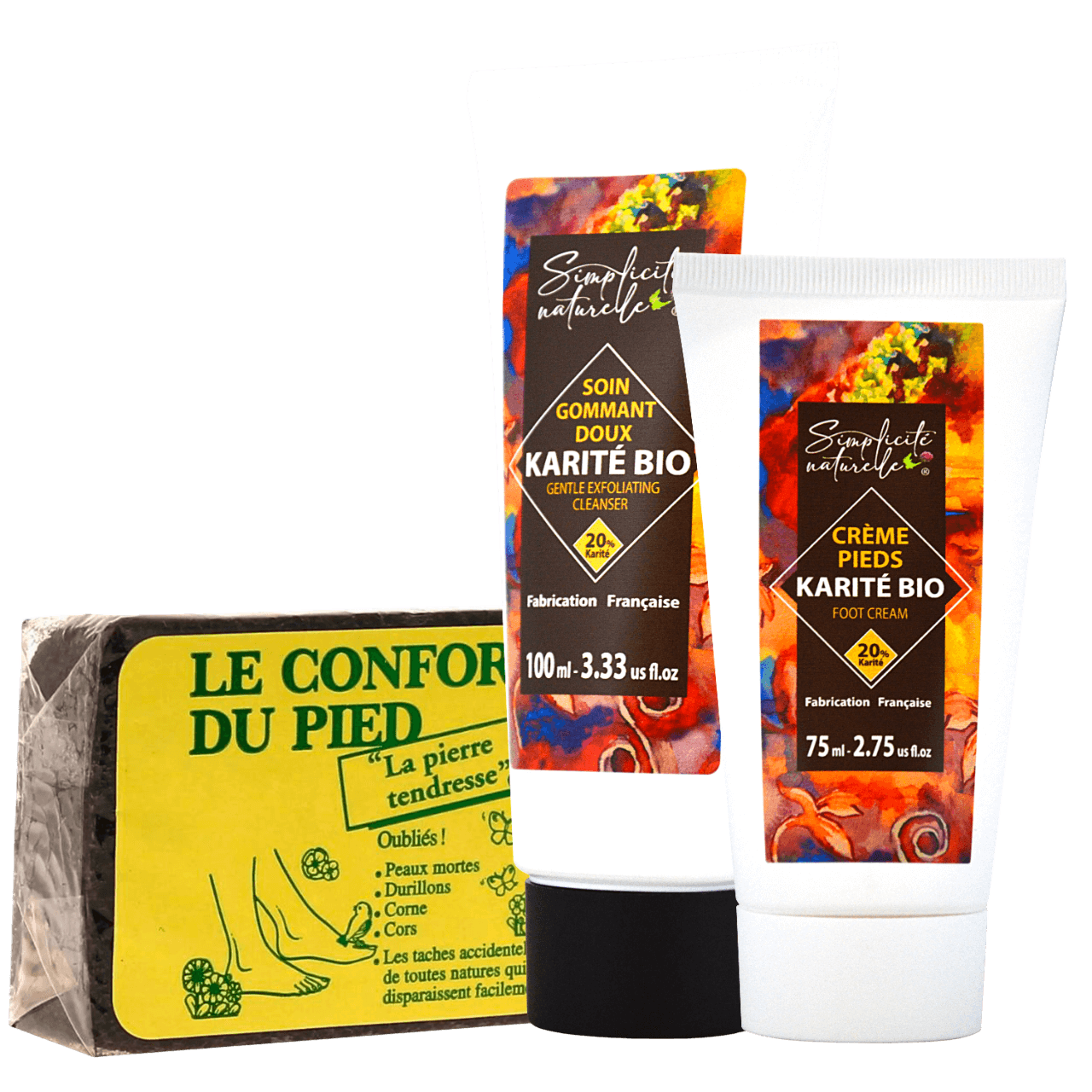 - Crème Pieds : Karité Bio - Fleur d'Oranger : AQUA, BUTYROSPERMUM PARKII BUTTER*, PROPANEDIOL, GLYCERYL STEARATE SE, MYRISTYL ALCOHOL, CAPRYLIC/CAPRIC TRIGLYCERIDE, DICAPRYLYL ETHER, GLYCERYL STEARATE, ARGANIA SPINOSA KERNEL OIL*, PRUNUS ARMENIACA KERNEL OIL, ANTHEMIS NOBILIS FLOWER WATER, GLYCERIN, SODIUM STEAROYL GLUTAMATE, MYRISTYL GLUCOSIDE, BENZYL ALCOHOL, PARFUM, XANTHAN GUM, TOCOPHERYL ACETATE, CETYL PALMITATE, COCOGLYCERIDES, CETEARYL ALCOHOL, ETHYLHEXYLGLYCERIN, HELIANTHUS ANNUUS SEED OIL, ROSMARINUS OFFICINALIS EXTRACT, ALOE BARBADENSIS LEAF JUICE POWDER*, MALTODEXTRIN, CITRIC ACID, SODIUM HYDROXIDE, SUCROSE, TOCOPHEROL.