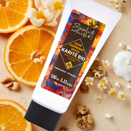 Le soin gommant au Karité réunit des ingrédients qui offrent à chaque utilisation une exfoliation délicate . Une rituel simple et sensoriel .La peau est lissée sans être agressée, le grain de peau parait plus uniforme et la douceur s’installe durablement. Un geste de soin qui allie l’efficacité et le plaisir.Le soin gommant permet d’éliminer les cellules mortes, de stimuler le renouvellement cellulaire tout en révélant un teint radieux. C’est un excellent moyen de préparer sa peau à recevoir tous les bienfaits de votre crème de jour .